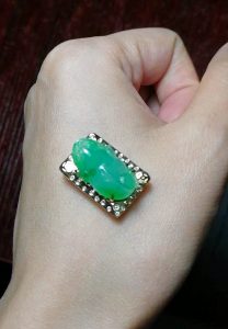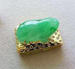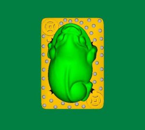 【招財胖金蟾】 咧嘴喜笑坐金臺,瑤光玉韞招財來…。 一見鍾情的小雕件,喜孜孜抬頭張望著,小巧玲瓏,胖礅礅又肥嘟嘟地…忍不住啊…忍不住就帶回家了。 菜根譚說:「霽日光風,草木欣欣。可見天地不可一日無和氣,人心不可一日無喜神」,這隻胖金蟾,像喜神般咧嘴而笑,雖說「玉韞珠藏,不可使人易知」(菜根譚原譬喻君子之才德歛藏),太可愛憨厚了,畫好設計圖,訂製可配戴當項墬,亦可案頭賞玩;玉以器成,常喜常憨胖金蟾! 陽綠巧雕小玉件:16.7*10.4*6.9mm 設計圖 另一種底子的設計,頗有古韻。 On 2017-10-12