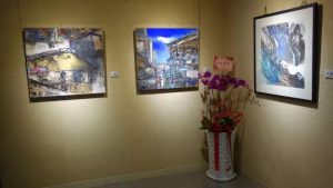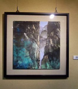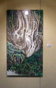 陳老師早年作品多為名山大川、深壑丘陵或農舍鄉景等寫生題材;近期作品以拓印、漬澤、分割畫面、重墨表現,運用各種不同的媒介及不同的技法,從生活中探索自然現象並轉化為心象,具體的表現在作品上,並增加色彩的表現,相當程度傳達出融合了東西方傳統造形藝術的和諧美。此次展覽40餘幅力作, 呈現相當大的藝術跨度,以水墨技法為底蘊,結構及視角大膽而細膩,濃墨與色彩融合,觀者由大景進入細節,凝聚力飽滿;以〈錯節〉這幅畫來說,擷取老樹根部大面向構圖,描繪之解理細膩又賦活生命力。另一面向的取景為俯仰可見的農村鄉景、街頭巷尾的小路蜿蜒,乃至車水馬龍的市街大道,每一種景物都有其獨特取景且豐富的生命力。個展名為心動神馳,乃因靜心觀物,筆意神馳之意也。 |