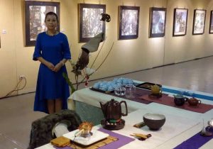 26日我有幸受邀擔任開幕茶會司茶,茶席色系與畫作重彩相應和,茶席旁設置立體創作花藝,以為讚賀。