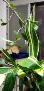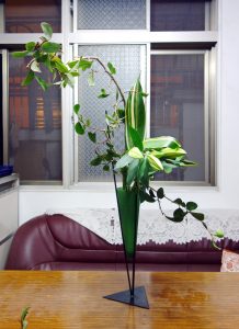 【霜降素綠】同色系創作,要表現出光影和層次,又不能獃氣死板,在任何藝術領域都是有點難度的;節氣霜降已至,秋果豐收的印象,由愛玉果點色,濃綠卵形葉子很有生命力,在秋霜中鮮活挺綠,斑葉蘭的葉面條紋帶出層次,水晶百合含苞待放,盛開之後結構更完整些。直立花形同色系素綠的秋意,姿態自然,一綠到底,大家隨賞。 On 2017-10-23