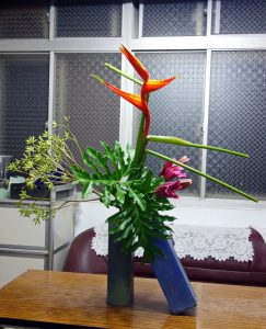 【舞風起兮……】兩只方柱形花器相靠,注水取得平衡後,其實很穩固的。尤加利果與木瓜葉,簡單拉出線條,與花器應合;垂蕉彎折菁幹,水袖舞風隱隱揚現,豔色垂蕉,有若頭戴綸巾,作勢欲起的太極道人,而百合,含苞待放,就如織錦繡袍上的華貴了。隨筆小詩,寫意的一盆花。 風生水起影舞兮, 花容艷冠定靜心, 太極有道,藏葉吐蕊, 是那寧鳴不默的初心。 On 2017-08-04