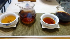 老茶生津,和胃健脾養臟腑。有一老友患有乾燥症,天冷或暑熱,眼澀唇裂,某日來家偶喝老普洱,一壺二十餘泡後,豁然撫掌而笑說,「我的喉嚨生津耶,我的嘴唇不痛裂了……」還很疑惑的問我,我明明沒有動來動去,為何髮際微汗……。我素來不強調茶療功效,台灣廣告法嚴格,加上有些人喜歡道聽塗說保健療效甚於茶質高低,未免混淆乾脆閉口不言,讓茶自己去講故事。好的普洱茶,一飲平素,再飲感動,三飲暢懷,就像有深度的智慧老者,和煦如春風、優雅老朽滿臉皺紋的臉,不顯山不露水卻藏有說不盡的人生故事。