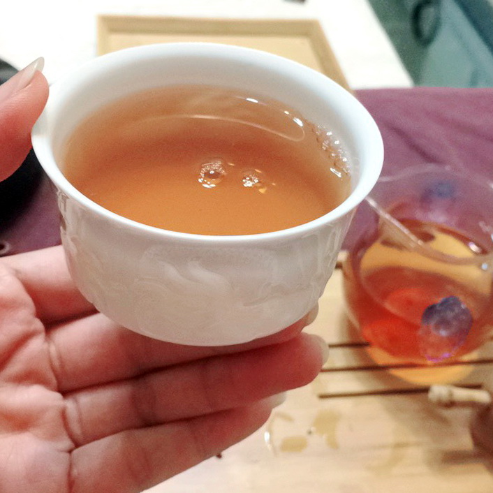 現在有機緣開封茶湯,經10年轉化,茶湯褪去青澀,湯浮油脂,葉黃素和茶酚類醇化得不錯,近日來連喝數道,夏夜晚風靜心一品,不覺莞爾一笑,歷史的命運和巧合,竟是神之妙手,沉睡200年的茶葉喝得,茶葉經濟炒作崩盤後撿到寶的茶葉喝得,一句話,茶仙賞茶喝囉!