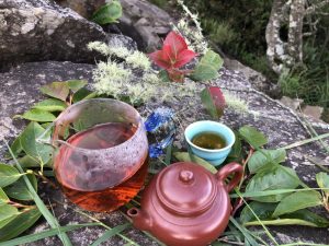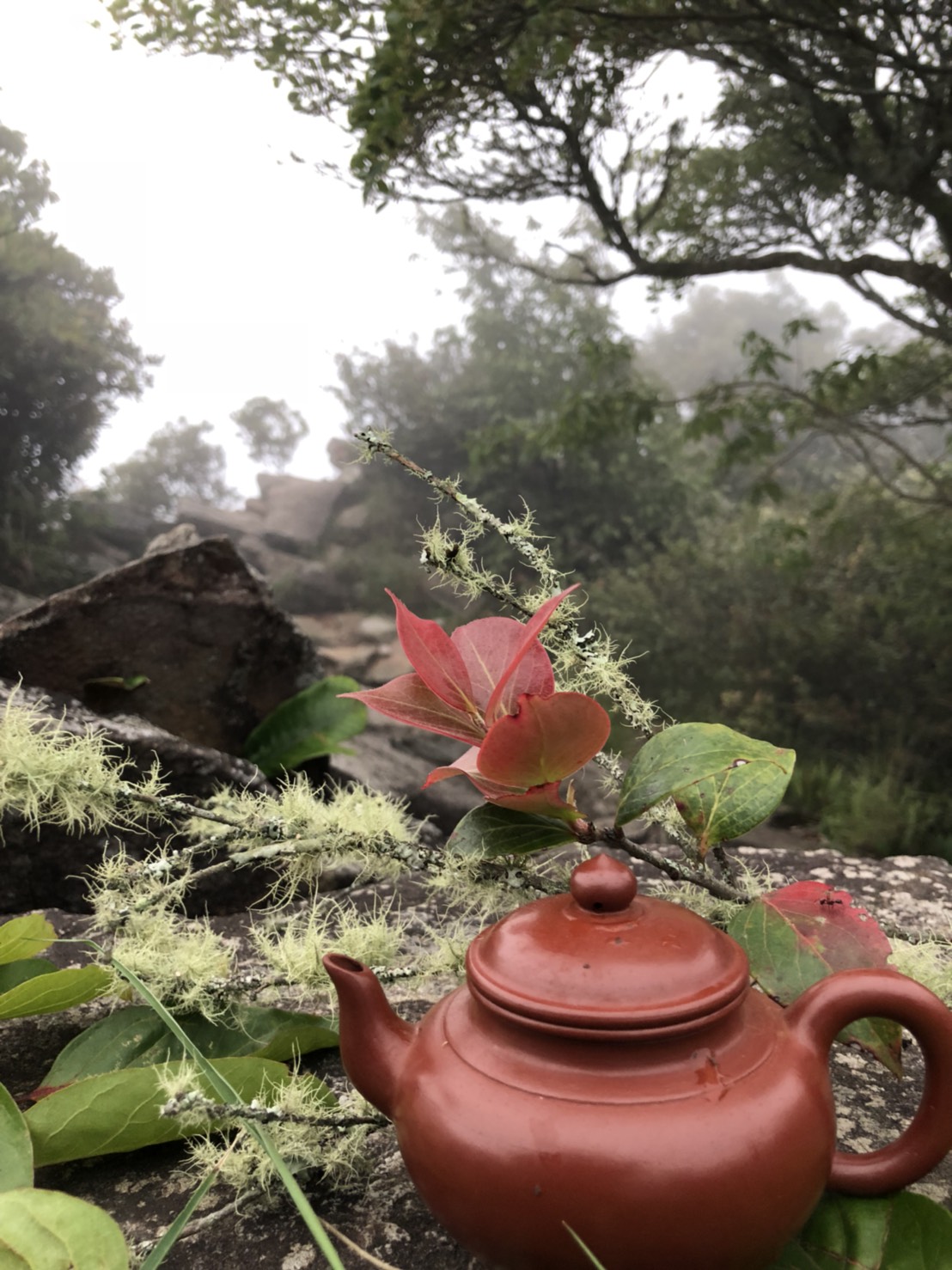茶道班的學員走到哪,泡到哪,登山也品茗泡茶跟山友分享裊裊茶香;群組中學員一時興起詩作聯句,遊戲人生一樂哉。