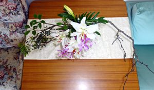 小暑時日,心浮意躁,插成之時想起順勢而為的古訓,不禁莞爾一笑,無為而治,難下手,造形用勢映心,難放手;不如就隨著態勢浮沉,心中有定錨不偏不倚,人生不過走著瞧看著辦,磕磕碰碰一路行來,忽焉黃粱一夢就醒了。