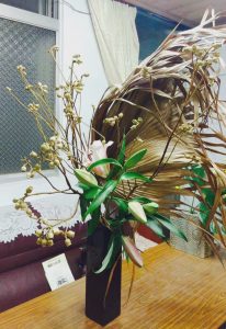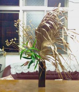 【大暑狂草】土潤溽暑,熱氣蒸騰,花,懨懨無生氣。颱風掃下來的棕梠葉,散亂狂野,和嬌貴的百合擺一塊兒,窺見了風動處的一絲心念。 上插花課,想著安安分分的插花,總是難,還是大手大腳的攪局痛快點,反正三伏天,熱到昏沉散逸,就當是仙子也避暑去了,隨我恣意狂放。 On 2016-07-30