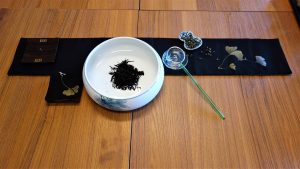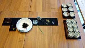 【水中撈月戲茶】 歲懷江月淺 酌取瓢茶飲 酡紅老茶淬 茶壽不知年 時近中秋,且取一瓢飲,飲茶如撈月,江心波巡不擾,方得一口甘潤好茶。