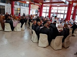 招待外賓,高山烏龍必不可少,雖是午齋期間一邊吃飯一邊喝茶,茶也要有層次和節度,茶人在席一絲不苟自在泡茶,茶侶奉茶如儀,茶席就像流動盛宴中的定心石,遷流不息的喧嘩吵雜,絲毫不影響茶人行茶的品質和速度,還要留心照顧喝茶的僧俗二眾配茶速度和口感,這需要非常多場茶席的歷練和經驗。