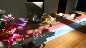 趁著天氣好,清心飲茶,白茶淡雅,味淡卻豐潤甘美,也是訓練口感敏銳度的敲門磚。課間我以鑑茶方式讓學員品飲,佐以紫砂壺沖瀹,並暫時禁語靜默,讓舌底湧泉的感受慢慢浸潤身心。