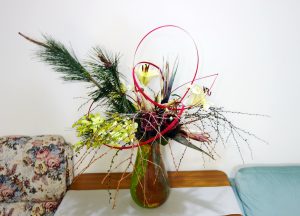 【松歲意年】 萬喜盈門,陽春暢意。 金豬華福,松歲意年。 白天堂鳥 帝王花 落雨松 直松 OT百合 蘭花 紅竹片 手工吹製玻璃。 賀年花,僅此祝福親朋好友 師長尊壽,吉祥如意! On 2019-02-04