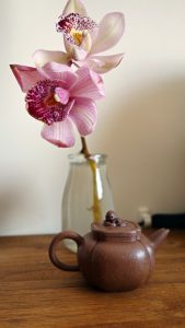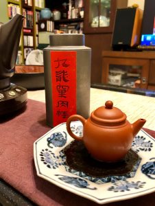初十二,濕潤帶寒的早春天氣,晚茶以趙秋萍的90cc朱泥小品沖瀹2016年四道重火精焙的九龍窠肉桂,呷一口,輕嘆一聲,好喝!再品一口,香遠芬芷!再沖數道,一壺注一杯剛好滿足茶癮。找出茶詩: