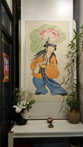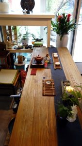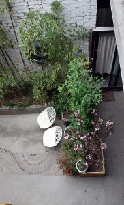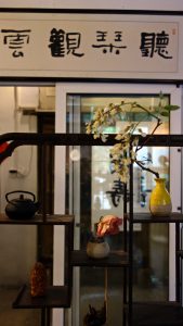 權引《清夜琴興》詩云:「月出鳥棲盡,寂然坐空林。是時心境閒,可以彈素琴。清泠由木性,恬澹隨人心。心積和平氣,木應正始音。響余群動息,曲罷秋夜深。正聲感元化,天地清沉沉。」白居易寫琴,絲絲入扣而意在言外。若看端景,老宅地氣祥和,古琴正音絲絃雅意長期薰陶,院子裡槐花、石榴和一地的花花草草健壯茂綠,相對於琴房的清雅,茶與花的借景不過增添點脂粉味兒罷了;遠道從台灣而來,借景承情,賓客清歡。