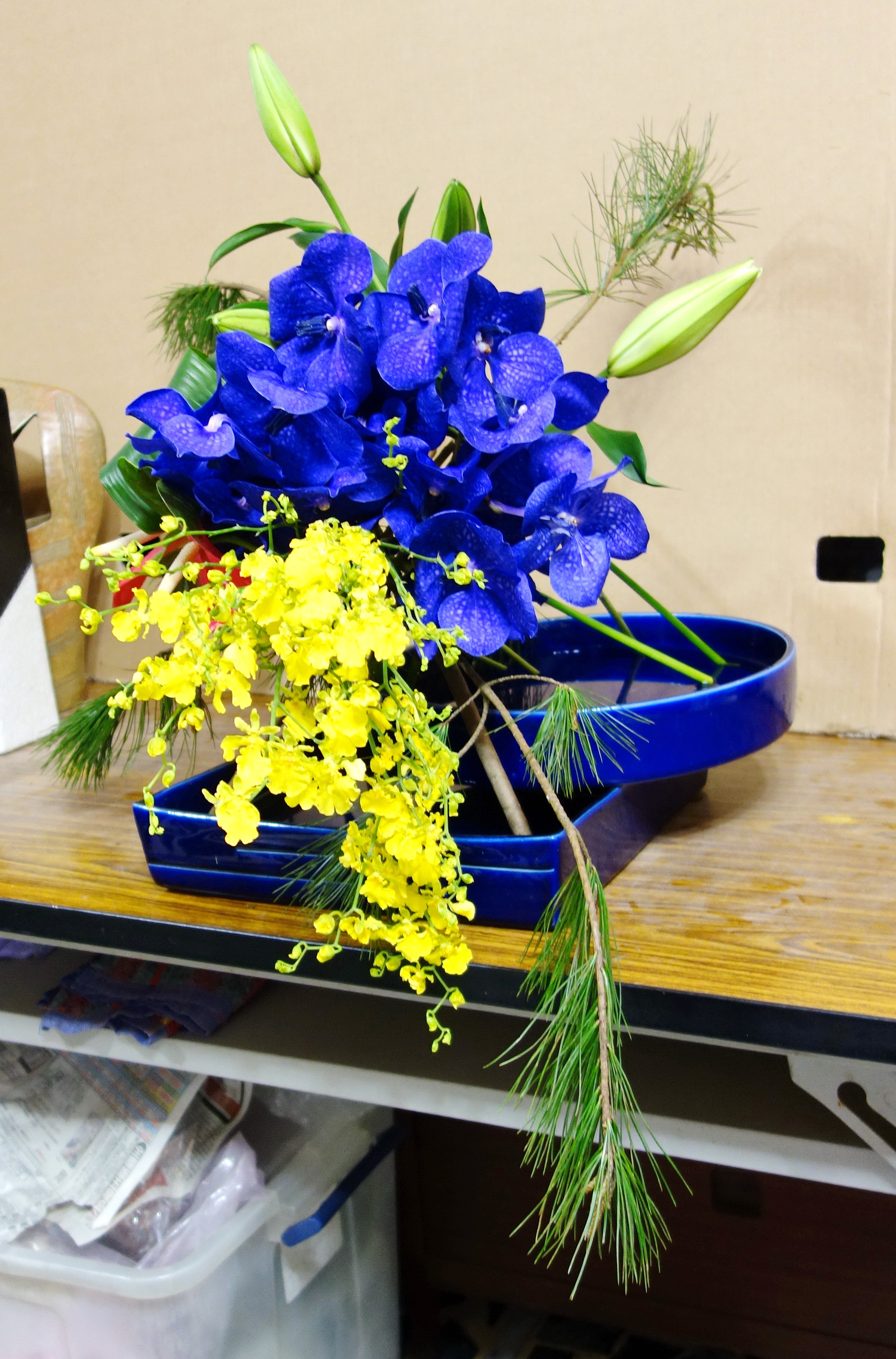 郭老師嬌黃、藍紫配花讓學生習作已經夠大膽,我還交疊花器透視空間的虛實,滿插花色大團塊面積的視覺刺激,籃紫異色的展演,迸發 我直觀性想要突破現狀的驅動力。大膽地撞色吧! 籃紫Violet!!