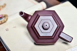 茄紫做得好,泥胎陳腐要夠老,燒結成形之後,肌理光潔氣蘊,表面帶油潤亞光,在不同光線折射下散發深棕、或藏紫、或紫藍的變化,很是迷人。紫茄泥黏性高、含鐵量高,明針要手輕而勁道,明到光潔細潤再塑形;燒結窯溫高時容易起皺或鼓泡,有時氧化鐵熔點釋出。