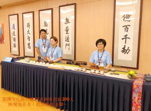 【佛青會30周年研討會茶席】八月,開辦多場大型茶會,其中8/31是佛青會30周年慶研討會,於新店慈濟靜思堂舉辦。當日茶會分成三席,貴賓休息室一席,人數約60人;外場茶禪文化區供應來參加研討會的大眾休息處,席設二席茶席;研討會休息時間人數從80-150人次以上。全日型研討會中間休息飲茶時段約六個時段,現場供應均以現泡現飲為主,每時段均換茶,配合天氣、研討會節奏,保持茶味鮮爽與飲茶的豐富性;全日人次上千人次的茶會,三席茶席與茶侶計九人,通力合作,19公升的茶桶,三席茶席泡掉了約14桶茶水,三百個杯子清洗過數回合,數不清到底泡了多少杯茶…………..