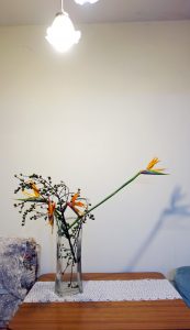 【七夕天堂鳥】節氣進入處暑後段,白日烈陽,日落後霜肅隱隱,雖然在金風玉露的時節,七夕牛郎織女的故事傳唱詠古,我思念的卻是老家爺爺奶奶還健壯時,擺案桌拜七娘媽的舊日情懷,香案中七娘媽的花是紮成小把的圓仔花或雞冠花,俗麗卻又令人懷念的鄉土艷色。 漢,古詩「……河漢清且淺,相去復幾許。盈盈一水間,脈脈不得語。」牛娘織女相會日,也是淚眼相別時,昨夜恰巧夢見魂牽夢縈的人,七夕天堂鳥,權以此花遙寄相思。 花材:山柿子,天堂鳥。 On 2017-08-28