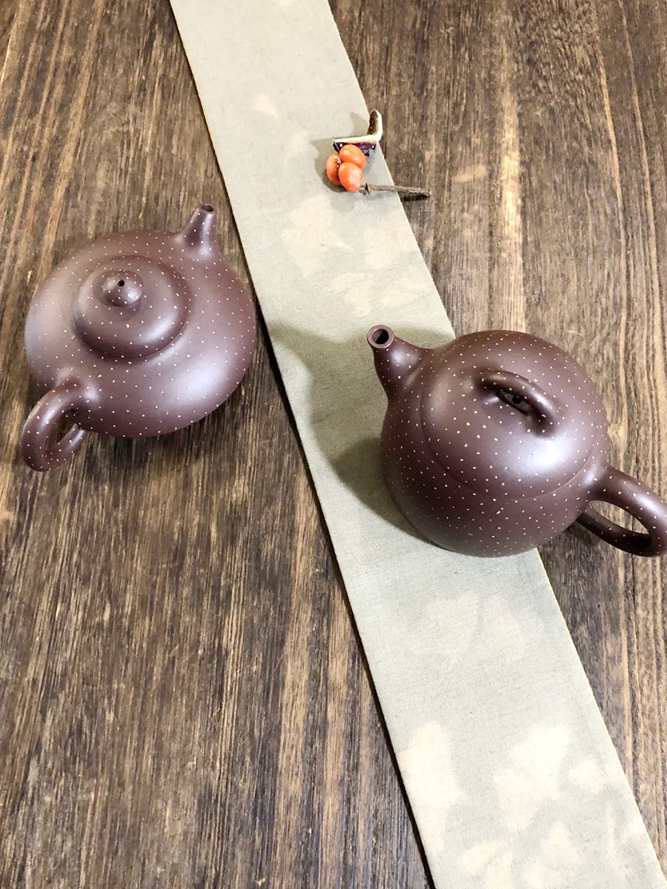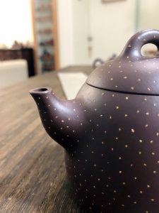 鋪砂施作手藝穩定度要高,有如滿天星般全鋪砂的紫砂壺,製程考驗耐力及美學,若鋪得呆板,看了氣悶,有密集點恐懼的,看了還全身發毛……,若鋪得疏朗有致,宛若星斗滿天,則雅致高潔,摩娑把翫,氣韻自生,手上幾把舊藏鋪砂,分享一二。