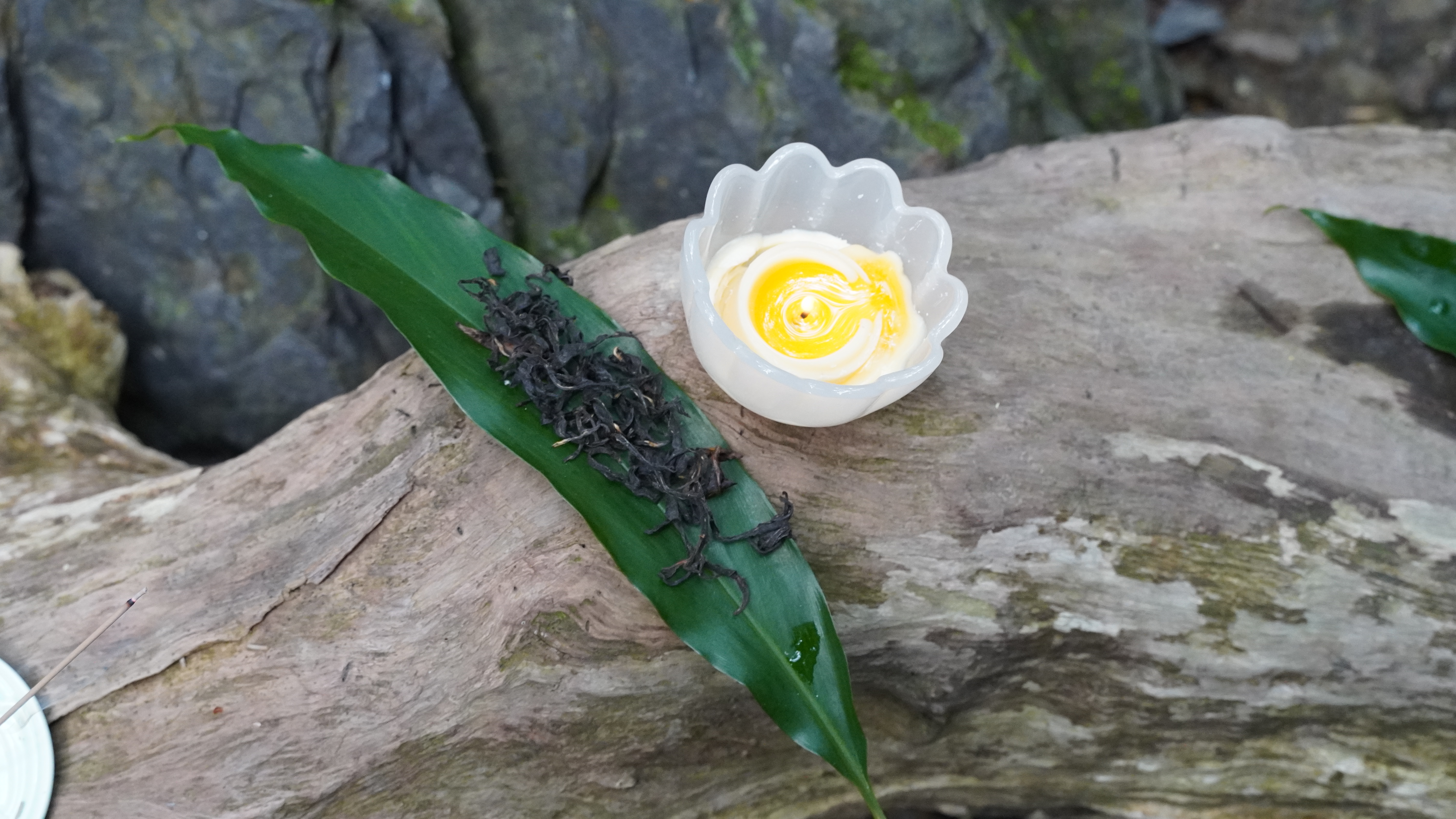 點泡前幾天在三峽插角肖楠湖春摘的金萱烏龍,親手採摘揉製的新茶,連同好香、光燭一起敬奉天地諸佛菩薩、諸天聖眾、天仙地仙水神山神…….一切萬有和諧共生。