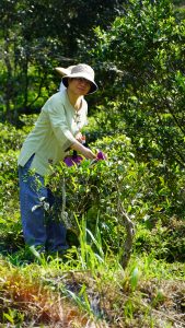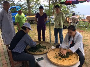 老茶骨眼中的奇寶,色種烏龍園區。放眼台灣,現在鮮有這種混生的生態茶園,就算是有機茶園,為了拚產量,也大都是單一茶種栽植,這正是老莊順應自然的『無用之用,是為大用』的體現。蒔茶老烏龍茶園有輪生續發的特性,很難一次採淨,要不斷採新芽,很厚工費時又費神。一來,就算是有機或生態茶園,一批手採製茶沒有40斤茶菜(濕茶葉),茶廠不收。二來,混生老茶園,各色各種混採製茶,對商業製茶廠也是很頭痛的,發酵和揉捻都很難照標準程序,只能茶農小量自採自製。我帶學生和茶友上山採製,教學兼冶遊,做好茶自己帶回家,有玩又有茶喝,這是茶仙給的春天禮物。