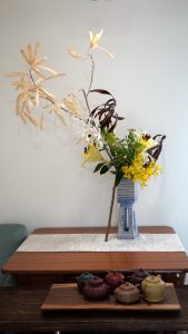 這一班學員均是抱持高度學習精神的茶種子,大都為舊識和舊學員,也有幾人生平第一次上茶道課,就勇於面對艱澀的岩茶系統,初上課時我還忐忑著,沒有基礎的學員如何理解岩茶?!事實證明,好茶自然會啟動身體感官和覺受的靈識,只要適當的引導,不玩花樣不取巧,老老實實的喝好茶,品茗之藝入門後就漸入佳境了。例如,第一堂鳳單課,選三款不同年份、級數的鴨屎香,其中兩款為烏崠山產,一款為鳳凰山產,喝品種香,也喝出級數高低,還有烏崠山特有山場氣的滋味。蜜蘭香如是再玩一遍,二款蜜蘭香均為烏崠山產,不同年份以外,其中一款為宋種;再夾雜一款鳳凰山系產蜜蘭香,試試看口舌能否決斷高低………。不過癮,再喝兩款不同年份的烏崠八仙單叢,乖乖!這下子,第一堂鳳單課,總算讓學員心滿意足的下課了。