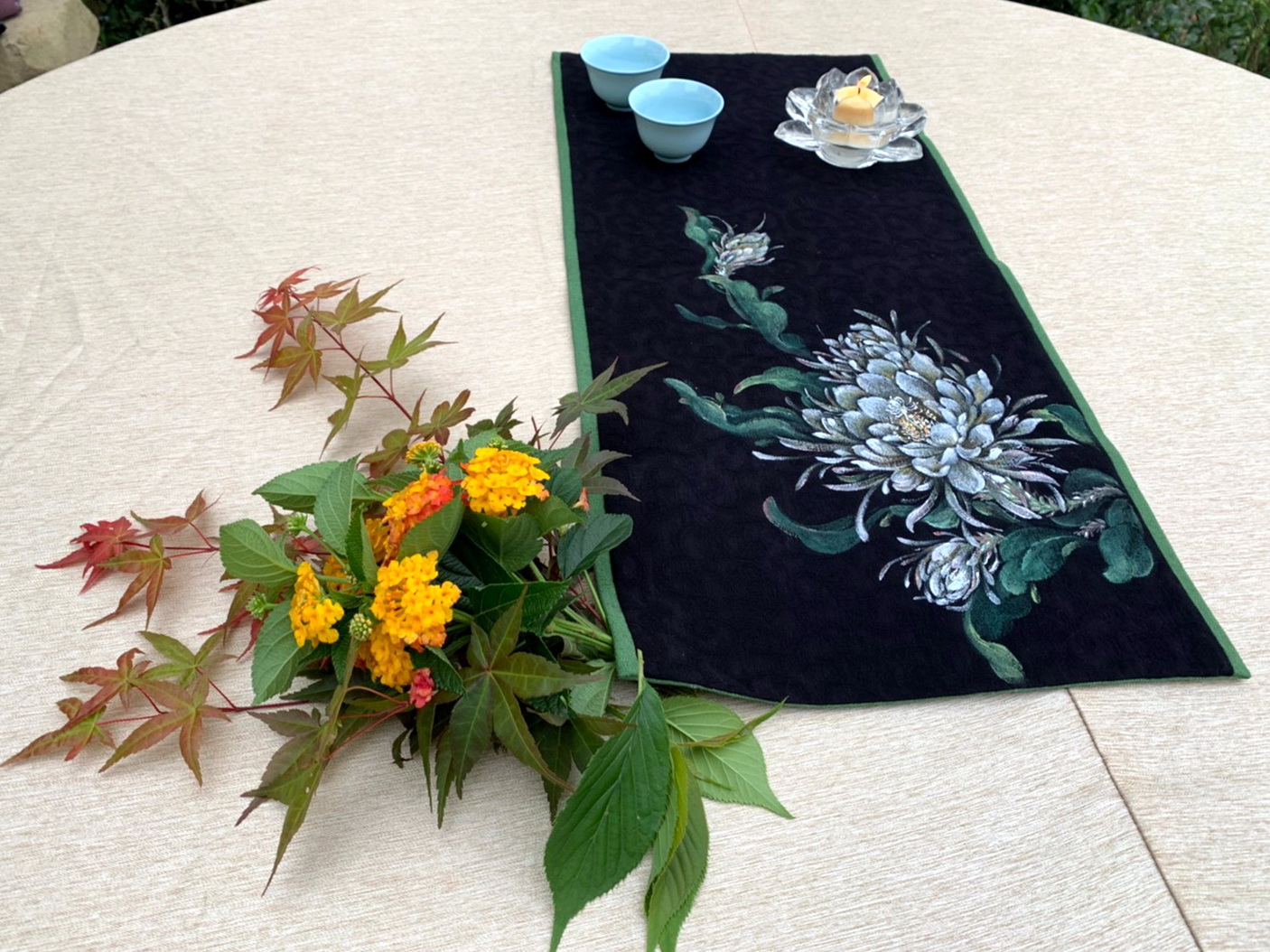 1 min to read 茶道器具 讓藏 Posted on 2020-06-04 月下美人 曇花席方 《月下美人 曇花席方》 桌面席方/茶席桌旗 獨一無二 每款僅一條 藝術全手繪、精細車工、高級棉麻布品,可手洗熨燙,繪色不掉色不失真。 【月下美人 曇花 黑/綠】38 純棉麻 正反異色 黑/綠內襯 單面繪 65×29±1cm $2,600 @可心翫布 20200604-38 By sherrysu