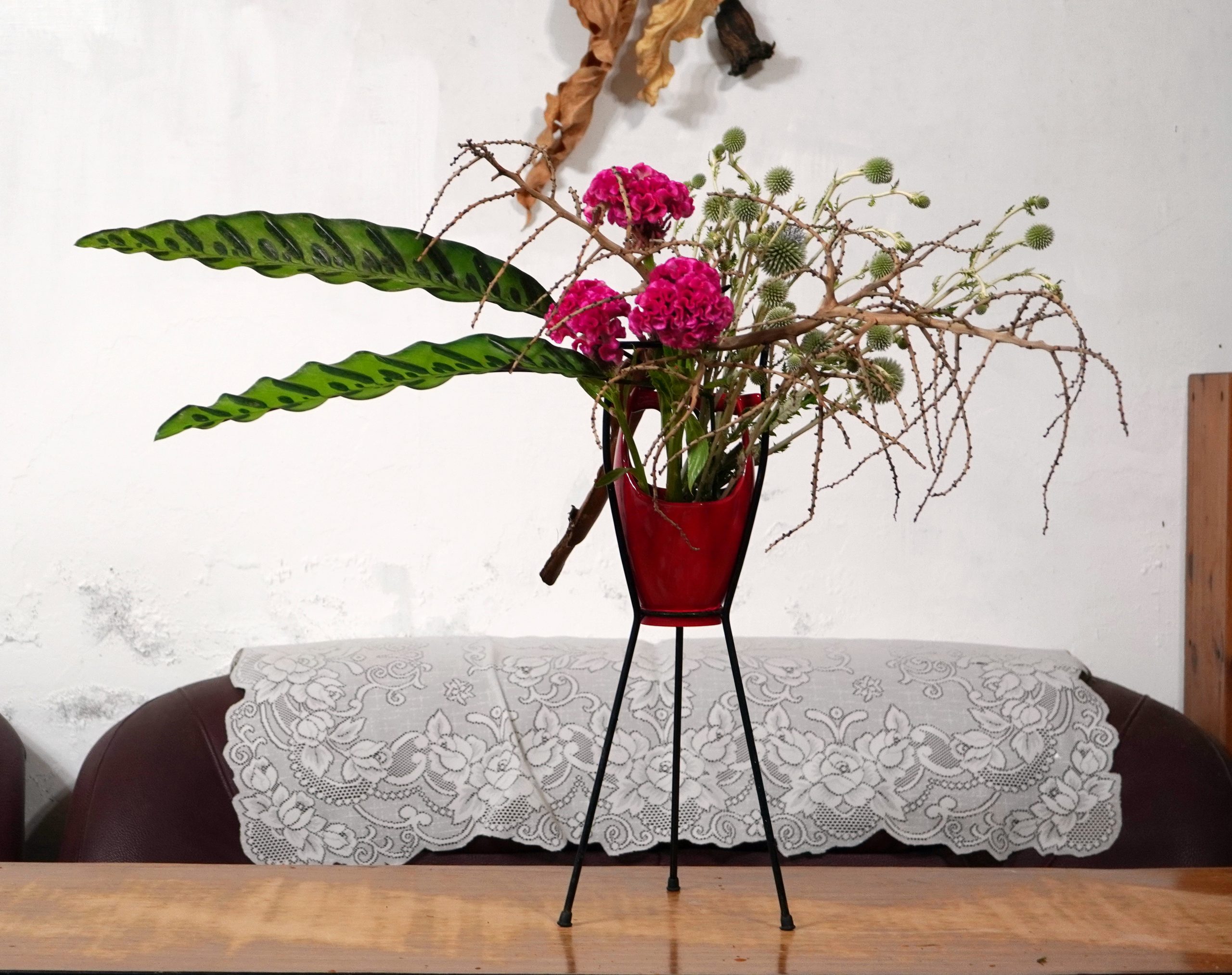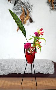 花材/尖孔雀竹芋 火焰百合 粉雞冠 山防風