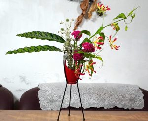 夏日的火焰百合,跳舞般輕盈的花態,紅黃色鮮豔的色彩,可以振奮心情,不妨隨意搭配時令的花材,隨意點輕鬆點插盆花,給自己一小方心靈色彩空間。