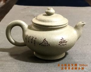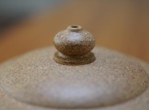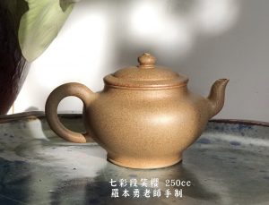 笑櫻大抵全手工制,半手擋胚通常拗不出那股韻味,失之獃拙了。笑櫻講求和美含笑,豐潤卻曲度有節,層次感分明;笑櫻體裁變化不大,壺身豐肩束頸,三彎嘴曲流平口出唇,如意耳形飛把,寶珠鈕,圈底明足,頸部起一圈或二圈稜線,將頸部與壺身區分開來,與壺鈕、壺身形成上中下三部分,層次感分明的觀賞把翫雅趣。