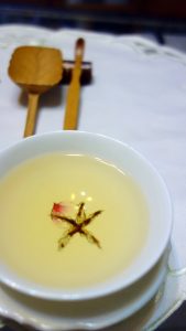 大禹嶺茶特有的冷凝花香,聞之如淡雅蜂蜜,卻香沉厚底,口感甘潤而甜,生津醇美。有句老話『如人飲水,冷暖自知』,絕世美女需親眼所見方知驚豔,上等好茶也是喝了才曉滋味;強以描述,對於沒喝過高冷茶的人,其實意義不大。以這兩道茶來說,其一的茶冬片特徵顯露,冷凝高香醇韻,節氣相應的好茶,尤其茶氣厚實,我問老師何有此醇韻,游師解說,此茶是竹林闢地後約四年生茶栽,新生土地有機質厚實之故。