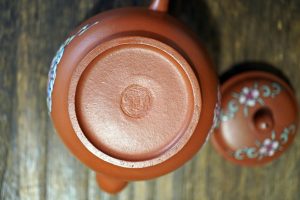 上文說過,加彩壺最興盛在清朝乾隆後,民國時期也流行一段時間,現在傳世的龍印、兔印等,都是時代的印記;在90年代,大量『託款』龍印、兔印、鼠印及及有名齋、堂、軒號…..的加彩壺應運而生,賣給喜歡有名氣堂號或者涉入不深的壺愣子們;託款,蓋為紫砂長期以來的潛規則及弊病。我蒐藏老壺通常不太看落款,泥料及工藝最重要,壺緣對了就收。蒐藏中有也一二把叫得出名號的正品,老行家們一看就懂。
