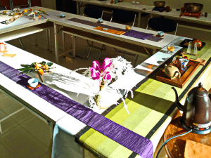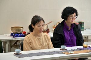 席間,茶氣引動,靜坐飲茶,嗅香細聞茶香,讓神經系統進入舒緩安好的祥和,穿插以頌缽的弦韻,引動心田意識,借著窗景的天光灑落一地,動靜一如的愉悅喝茶。