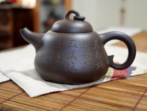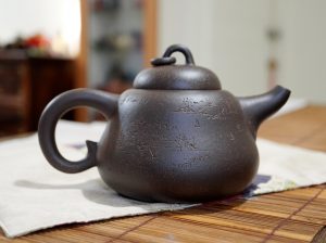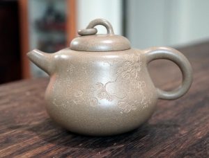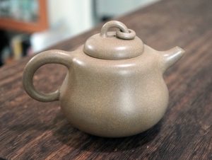 我蒐藏紫砂壺的歷程中,看到工形胎土具優的葫蘆都忍不住要購藏,其中最喜歡的是曼生十八式中的葫蘆,圓滿靈巧,雍容有度,泡茶把翫兩相宜。曼生十八式,堪稱文人與藝人珠聯璧合成功創作的典範,歷來一直有陶手再制流傳,手中兩款曼生葫蘆,分別是90年代青段和庚子年新作的紫玉金砂。