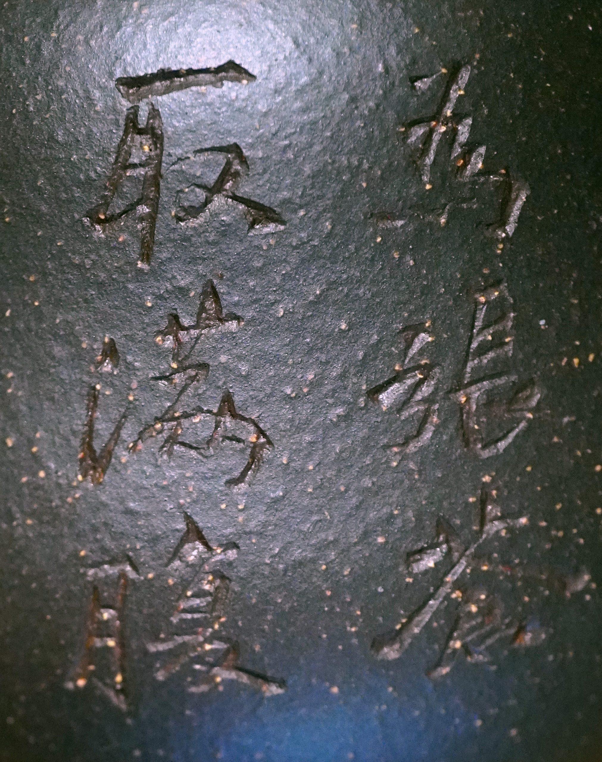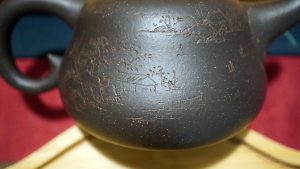 90年代這把的款/中國宜興、蓋/凤英,薄意刻葉果清趣,玲瓏小巧頗得我心。後者紫玉金砂這把壺銘根據曼生葫蘆當年的識款『為惠施,為張蒼,取滿腹,無湖江。』破砂刻字遒勁逸麗,紫玉金砂胎體如星辰羅布,迨以時日泡養,必得雅翫。