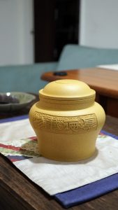 回到家找出本山綠泥茶罐養著,想起來的時候,就像小孩子挖柑仔糖罐偷吃,解解饞。昨日去中醫師處理療,說是身上有些寒氣,今日小陽春晴明冬暖,趕緊喝點補補氣囉……….