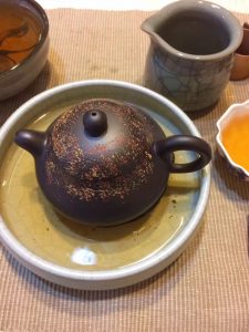 今日試六年武夷水仙,也試水新買的黑泥滿天星壺,新年開壺開胡,獨飲卻歡快!!