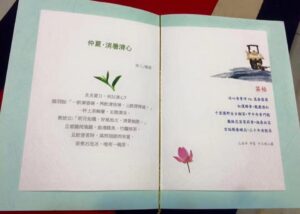 中場休息後,下半場大家合唱道歌三首,喝了普洱中氣飽足,神情奕奕,發抒歌詠最恰當了;自古茶會並不是只有像日本茶道般和敬清寂,危危端坐而已,焚香插花、吟詩作畫、樂舞歌詠皆有之。最後再以三十年宮廷陽春嫩尖老散茶壓陣收尾,醇厚甘滑,棗香帶青草味兒,越喝越甜潤,頗有欲罷不能之勢,這下子,大家對普洱二字,完全改觀了。風清夜,何以消煩暑?有如白居易的詩,散熱由心靜,一碗普洱茶,百變深邃滋味,只緣茶友此身體解一二了。我這雲水茶席,來不著,去不留,大家歡喜就好。