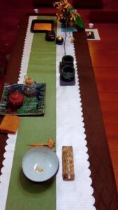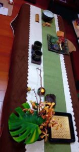 心易師父遠行東南亞弘法,淨念精舍常態課程遂以茶會交流瓜代;時值炎夏,這場雲水茶席定調清心消暑為上。眾所周知普洱清熱、消暑、消食、利水、祛風解表、生津益氣……夏日清飲老普洱,人生一快意也!!但是普洱品質參差,375公克茶餅,台幣500元、5000元、50000元皆有之,如何辨別?加上普洱「臭普」黴變劣品充斥,許多人一看黑乎乎的熟茶就退避三舍…..今晚,我決定以普洱茶華麗變身為主題,讓大家試試箇中三昧。