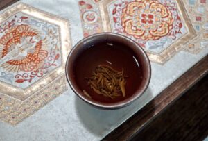 放下相機,尋茶來飲,李白說「雁引愁心去,山銜好月來。」天光微微,雲彩素淡,忽然覺得沒拍到鴻雁南遷的照片有啥可惜了,且喝一甌芽毫清茶,靜看天光漸隱,直至山色黛青隌闇。