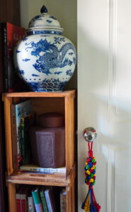 蟠龍大罐取一點老凍頂,逡巡一遛眼架上,隨手取下蘇秉康的萩燒碗,