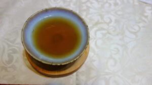 我所收到的老黃柑,圖3年份約25年上下,滋味熟黃甘潤,茶湯紅帶橙紅金圈;圖4已轉蔘香甘甜,茶湯褐紅帶橘,藥性顯著,一喝通體順暢微熱,雖說碎末狀茶轉化較快,推測至少是35年以上藏茶了。從茶商口中得知,客庄老茶農以九十好幾,只會講客家話,也記不清兩批茶是哪年份的老茶了。台灣老茶大多是當年歲時不濟賣剩的留茶,老茶農不像現代人講究養生,能賣錢的茶才有價值,留茶扔在屋頂閣樓,塵封在大洋鐵桶中數十載,也不曾理睬、覆焙,意外地保存了20-40年前寶島土地滋養的老茶。黃柑茶在當時雖不算粗茶,也不過是外銷中上品質平價茶,但是台灣老農勤懇培育栽植,無農藥純有機的年代,土壤豐潤厚實,歲月藏茶之後,醇厚滑潤的滋味,卻是無可取代的。現時,黃柑栽植幾乎絕跡的年代,我已無從喝到當年份黃柑新茶(除非從茶業改良所取樣),從老茶滋味來看,芽色黃嫩,多花的樹型,應該是甘甜清香,茶色橙紅的淡雅紅茶,與當時魚池一帶紅極一時的濃厚醇香阿薩姆,滋味當互為映照。(續@老黃柑-2)