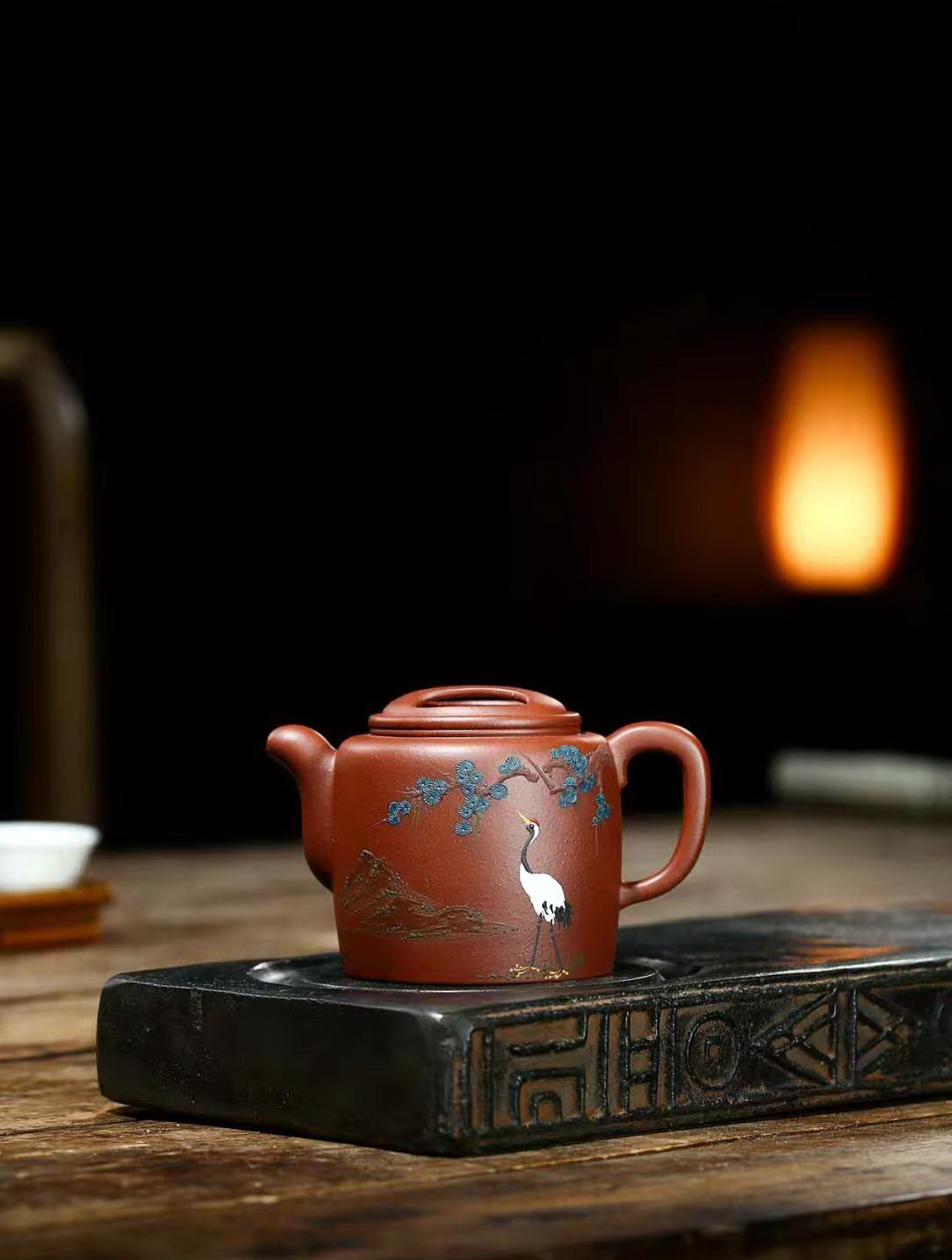 #老紫泥粉段泥 雕松鶴延年杯組