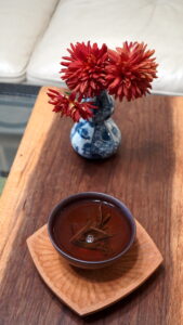 烤香綠豆椪,盞點滇紅大金針,菊紅花家裏野長的,日本染付葫蘆小瓶隨意插著,清冷寒濕的午後,分享一下手上的柿紅盞,看倌隨緣自賞。