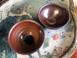 喝茶懶得整一套的茶具的時候,碗泡法通常用建盞,發茶或萃取茶湯都簡便而均衡,最常取用的就是柿紅色系的茶盞,不管是電燒或柴燒的,柿紅色的深淺紅豔黃橘帶霜等各式光采,百看不厭。