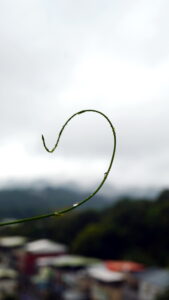 低頭看,地景天成,路邊溝渠旁蒼苔濃綠,柏油路上掉落的樹葉,還有自己拉長的身影,無處不是風景。