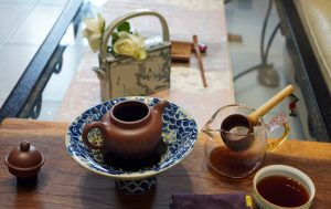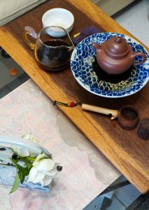 眼到、口到、鼻到、手到、心到,喝茶跟心經上所述的一樣,眼耳鼻舌深意,色身香味觸都用上了;搬演一套行雲流水般的泡茶行儀,受想行識亦復如是,當下具足,然後伸伸懶腰,繼續日常生活調子。