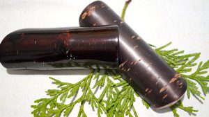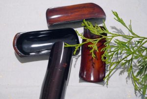 甲、櫻花木樹皮需用豬鬃反覆細拋使之光澤油潤