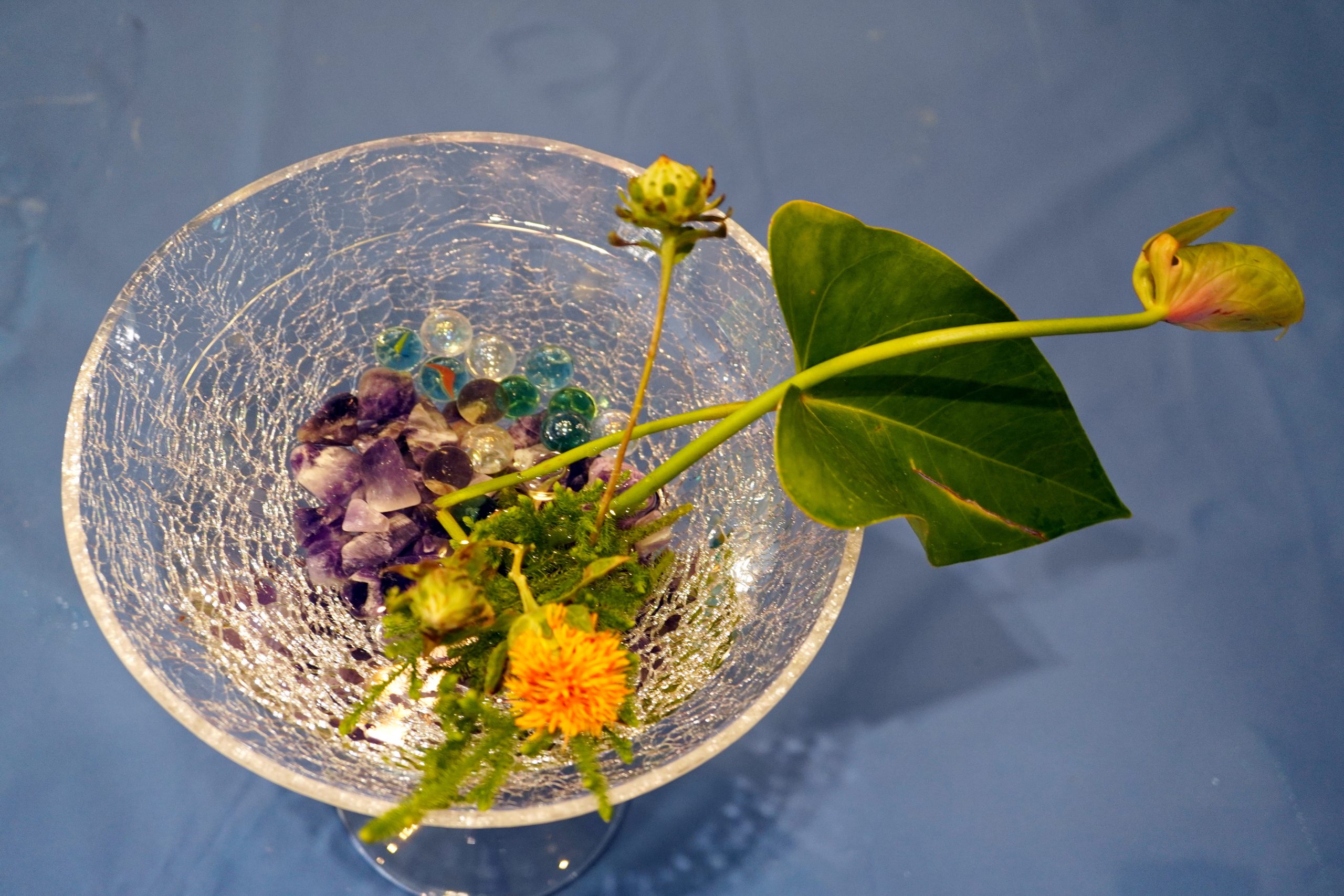 草月流華道也擅長敷面花之要,蓋因結構嚴謹的訓練,仰角或俯瞰再到平視無不信手捻來。