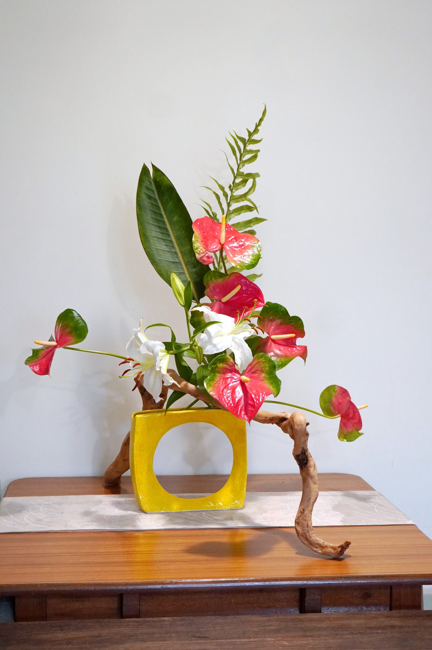 0 min to read 真巡創作花藝 艸禾魚花藝 Posted on 2023-06-05 舒作從龍勢 【舒作從龍勢】 明黃花器,天生自帶貴冑氣。 杜鵑花根轉勢若弓雕,似從龍;百合嬌弱吐蕊,火鶴艷而不俗,攲倚翩鴻,隱約風動勢起。 《唐/齊己》 何妨舒作從龍勢, 一雨吹銷萬里塵。 若說雲從龍,風從虎,初夏的雷雨一新滌塵,作勢欲起的花態,靜室相伴,心滔洶湧的是對藝術不悔的追求。 @真巡花藝 By sherrysu