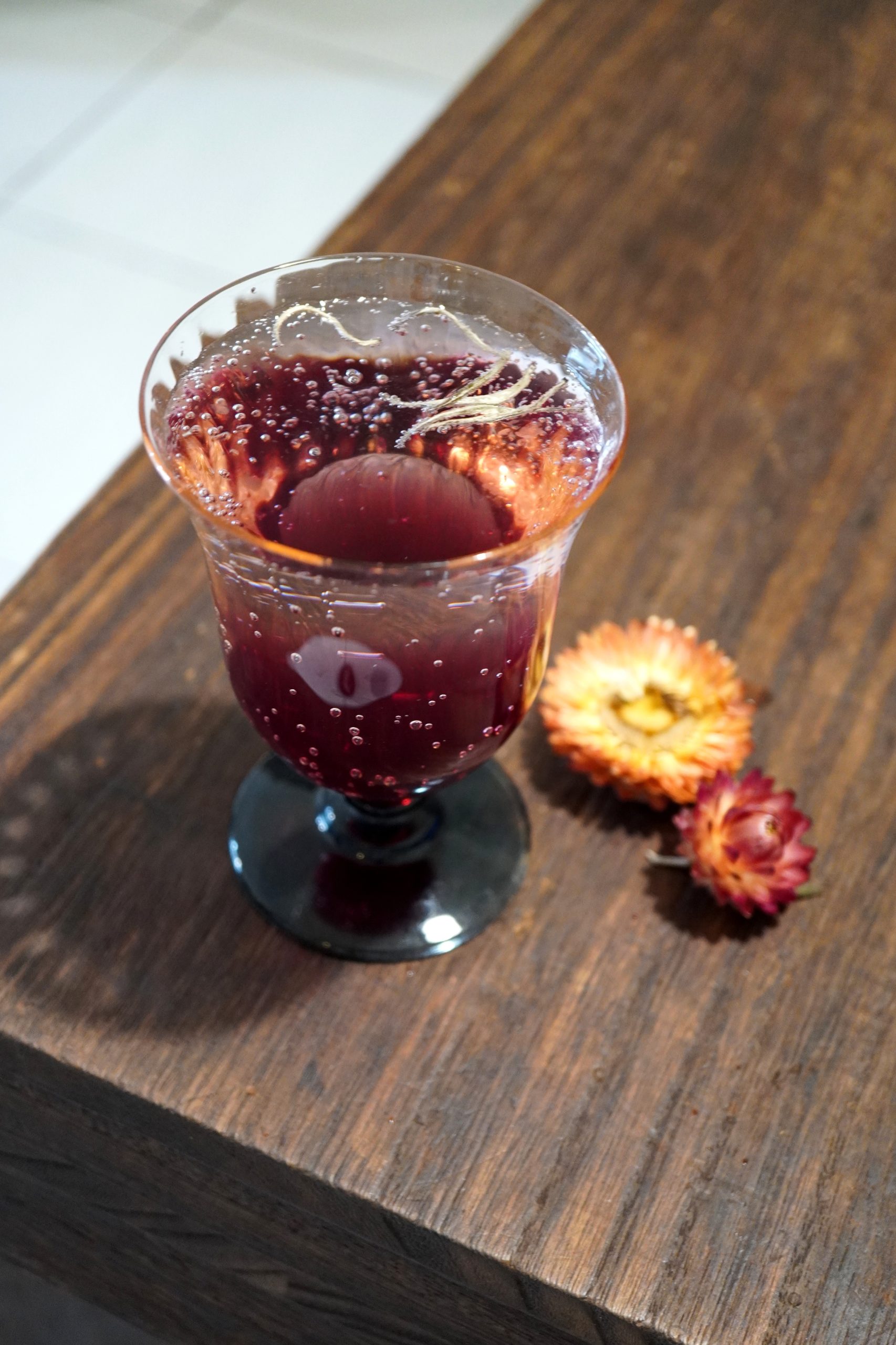 家有漂亮水晶杯的,濃重厚泡的茶加氣泡水,滾滾冒泡的微鹼味特別解暑,當作佐餐的飲品也很解膩,咕嚕咕嚕喝上幾口……哇哇!!痛快哩…….。.