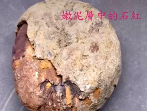 石黃泥/石紅泥都是罕見的嫩泥層,富含黃鐵礦的黏土,開採量很少,天然礦料開採後通常以蛋形、圓形、圓柱狀、或葡萄狀結核的形狀出現,大小不一,以蛋狀最具代表性,有殼、幔、核。石黃泥/石紅泥外殼都硬似鐵,外觀土黃色,其核形似蛋黃,稱為「石黃」;外殼、內核偏於紫紅色,稱為「石紅」。